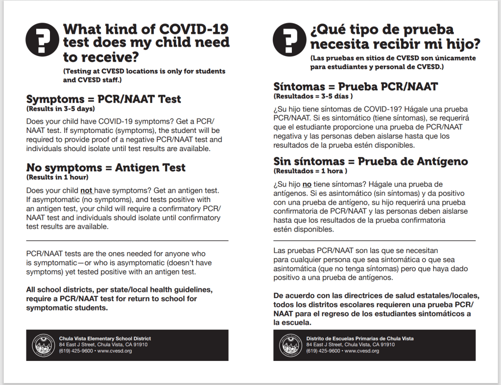 CVESD also understands there are still many questions that families have related to the protocols in place. With that in mind, they have developed a COVID 19 email address COVTEST4@CVESD.ORG