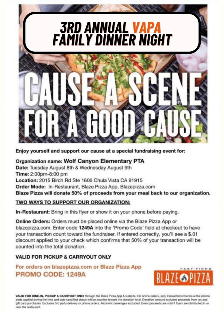 Family Dinner Night for VAPA – 8/8 & 8/9!