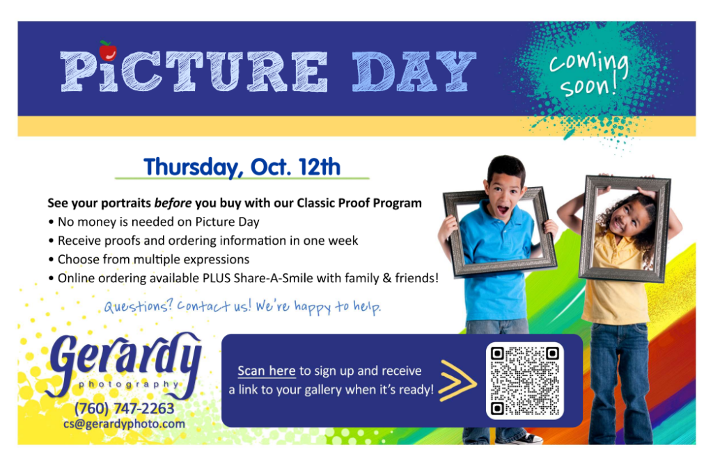 Timberwolves! Our Fall Picture Day will be happening this Thursday, October 12th. Make sure to come to school that day with your best smile!