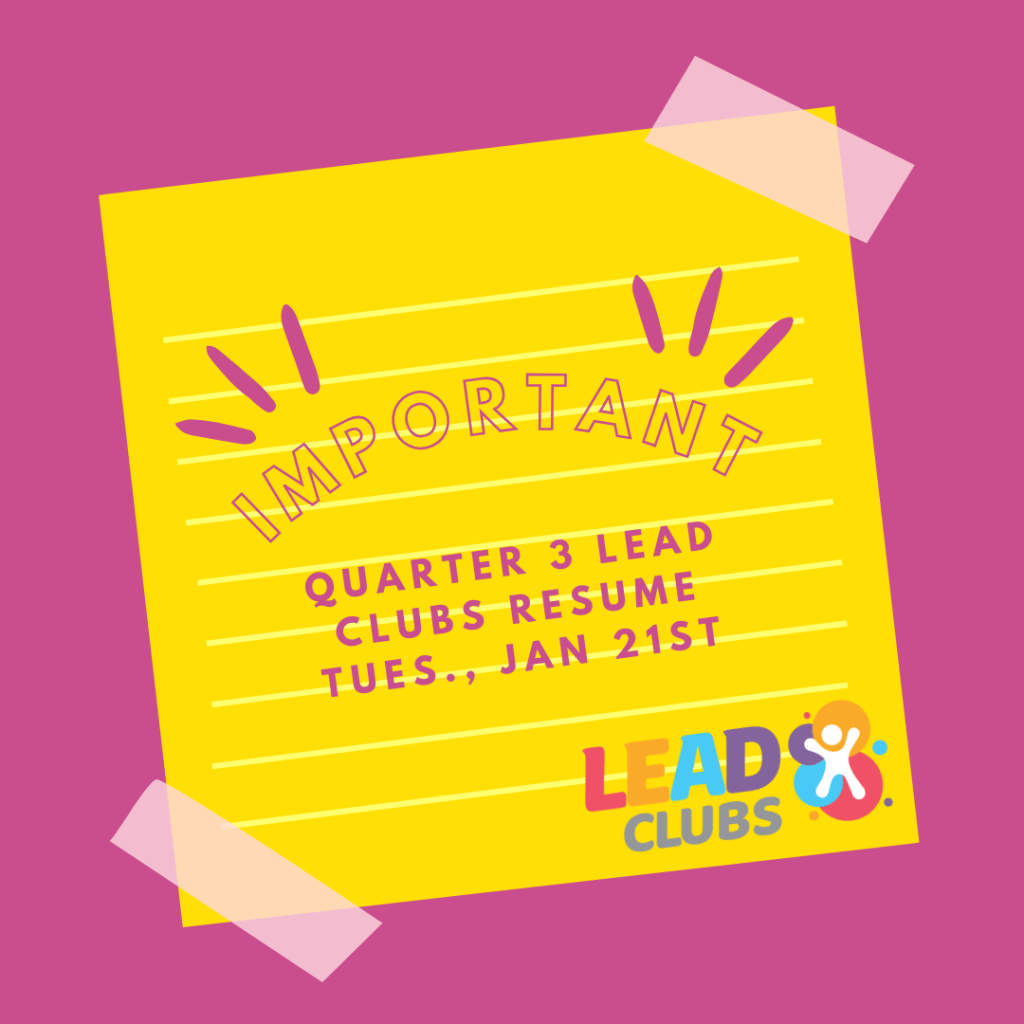 Just a friendly reminder: Our LEAD Clubs will officially begin on Tuesday, January 21st.