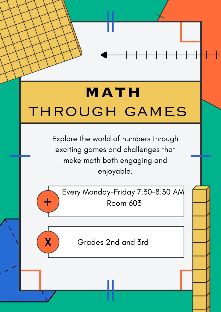 Math doesn’t have to be boring! In our Math Through Games club, students will get the chance to strengthen their math skills through engaging and fun activities. With a focus on teamwork, problem-solving, and strategy, this club will make learning math an exciting and interactive experience!