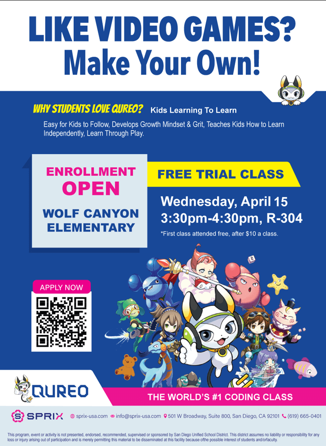 "This program is not sponsored by the Chula Vista Elementary School District. Approval to distribute flyer is a community service rather than an endorsement."